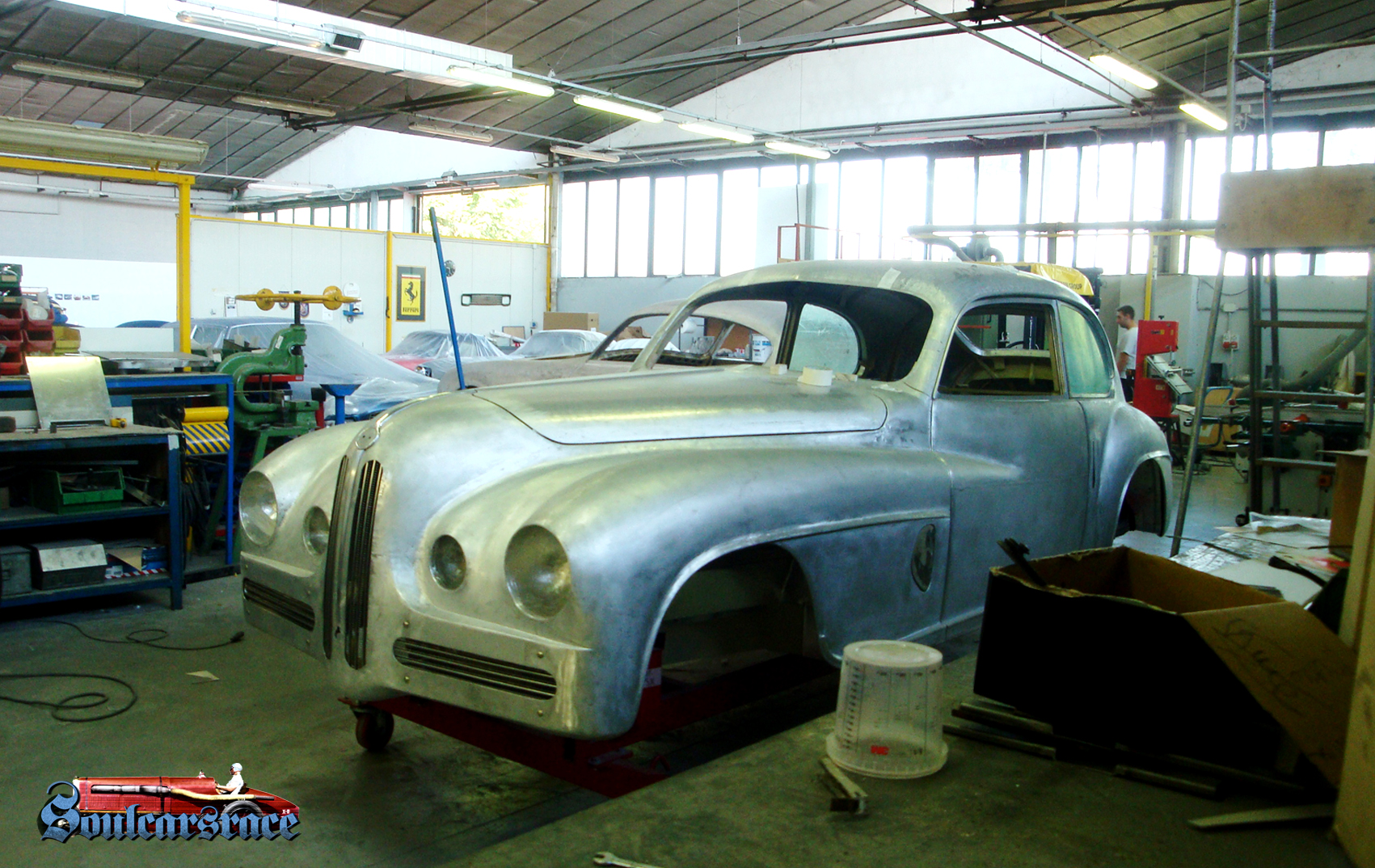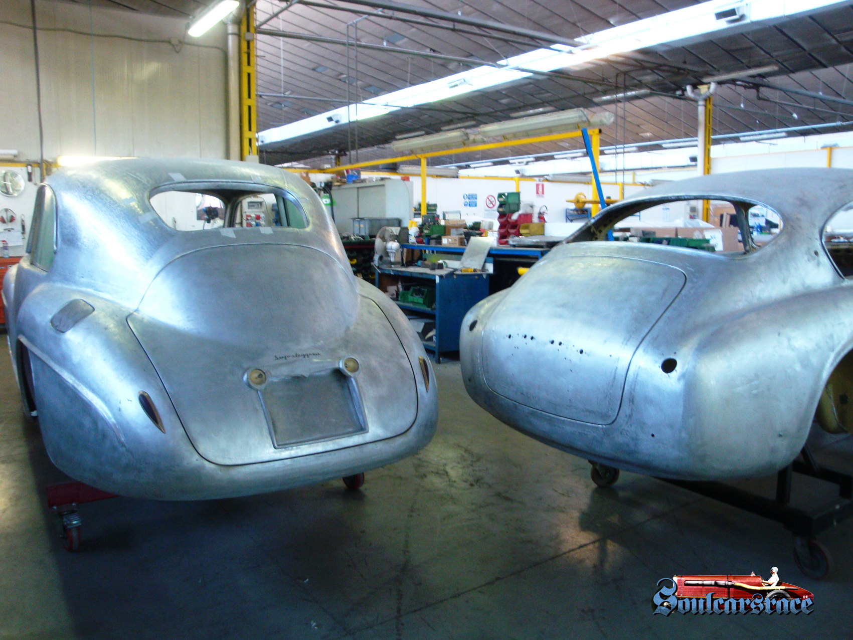 Touring designs and manufactures cars in very few numbered pieces of the highest level, with Bentley, Certified as the Alfa Romeo Disco Volante, based on the Alfa Romeo 8c Competizione (winner of the “Design of the Year” by AutoDesign & Styling), produced to celebrate the anniversary of 60 years of Alfa Romeo C52 1900 ” Disco Volante”, designed and built by Touring in 1952-53. Also performs sophisticated vintage car restorations, especially vintage cars out in different years by Carrozzeria Touring of Milan, being probably the only or one of the few in possession of techniques and workers able to produce complete body shells, hand by hand typing of aluminium plates. Aluminium is indeed shaped by plumbers taking as reference for the forms to achieve a scale model 1: 1 made of clay.