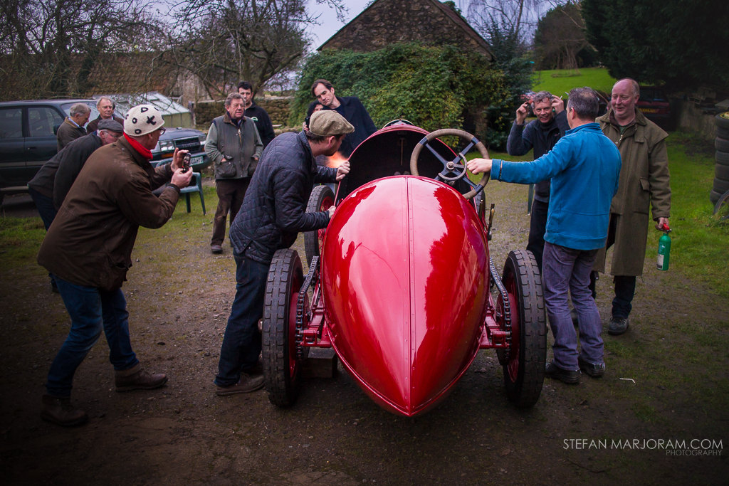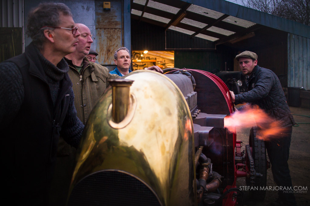 The photographer and Illustrator Stefan Marjoram, has documented the last 4 years of this gigantic restoration (which is now in final stages), with lots of photographs, sketches and a short film about 10 minutes he produced, which will be presented in the coming months. It is a documentary that tells the story of the original car and view its rebuilding. For the first time after more than 100 years, you can see and listen to this incredible engine start, while sparks and smoke are projected anywhere from a free engine exhaust pipes. The car once, will be developed through some tests in a large open space. Future projects for the reborn S76 are: participation in the Goodwood Festival of Speed in 2015, to upcoming events of the VSCC (Vintage Sports-Car Club), and a trip to Ostend to visit the places where he was tried the speed record in 1913.