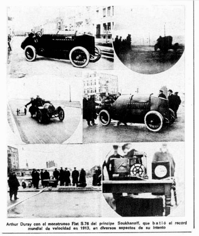 “Abbiamo ricevuto dal noto pilota francese Arthur Duray questa descrizione e le sue impressioni delle prove di velocità intraprese con una delle nostre FIAT 300 HP: …il Principe Boris Soukhanov, ha acquistato pochi mesi fa una Fiat 300 HP, con l’obiettivo di raggiungere un nuovo record mondiale di velocità. L’auto gli è stata spedita a Mosca, dove ha potuto testarla e rendersi conto delle enormi difficoltà di guida di una macchina così veloce. Egli si è quindi recato in Francia per cercare un pilota professionista in grado di guidarla e io ho avuto il piacere di essere scelto. L’automobile è stata quindi spedita al Circuito di Brooklands, dove ho potuto provarla, ma mi sono bastati pochi giri per capire che la pista non era adatta a questa auto. Non avevo infatti alcuna intenzione di suicidarmi. Ho telefonato quindi al Principe Soukhanov per dirgli che ero pronto a mostrargli sul posto la pericolosità del Circuito di Brooklands. Con Soukhanov al mio fianco, portai l’auto ad una velocità di 200 km/h, ma dopo due giri mi chiese di fermarmi; la forza centrifuga sulla sopraelevata nella quale Percy Lambert rimase ucciso, mi portò quasi ad uscire di pista. Sfiorai il bordo di soli 10 centimetri! Il test convinse il Principe che insistere sarebbe stato molto pericoloso e mi chiese di cercare un’altra pista. Pensavo che avrei potuto impiegare la strada tra Arles e Salon, la migliore al mondo per un simile tentativo, ma la Commissione sportiva dell’ACF data la lontananza del luogo, non accettò. Tornai in Italia senza alcun successo. Decisi quindi di utilizzare il rettilineo di Ostenda in Belgio, pur temendo che non fosse lungo abbastanza per consentire una buona corsa. Ho fatto quattordici prove, correndo oltre i 200 km/h e in alcune i sistemi di rilevazione hanno registrato una velocità di 225 km/h.