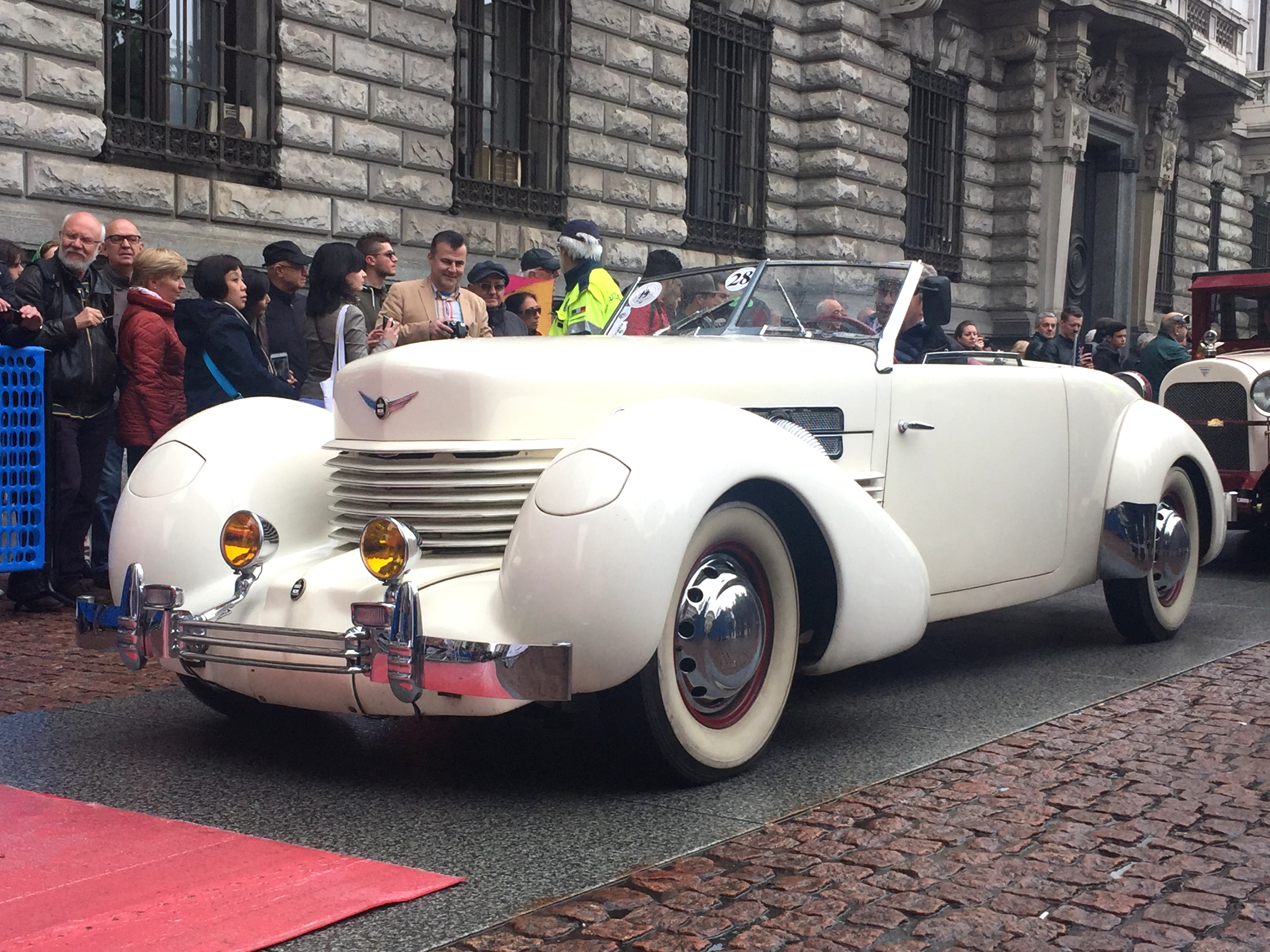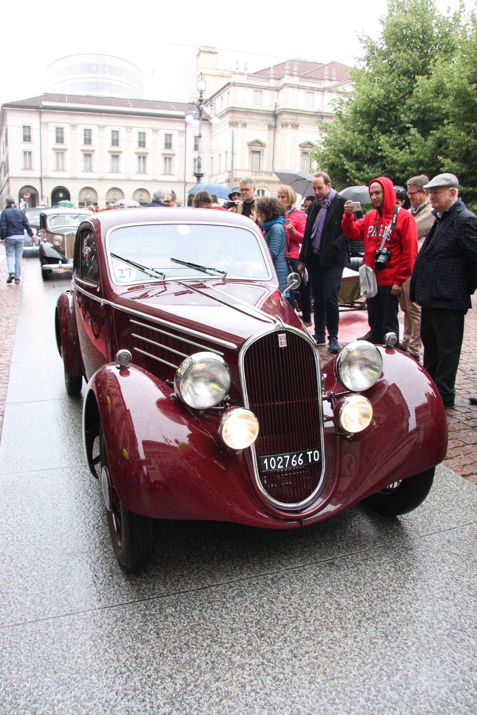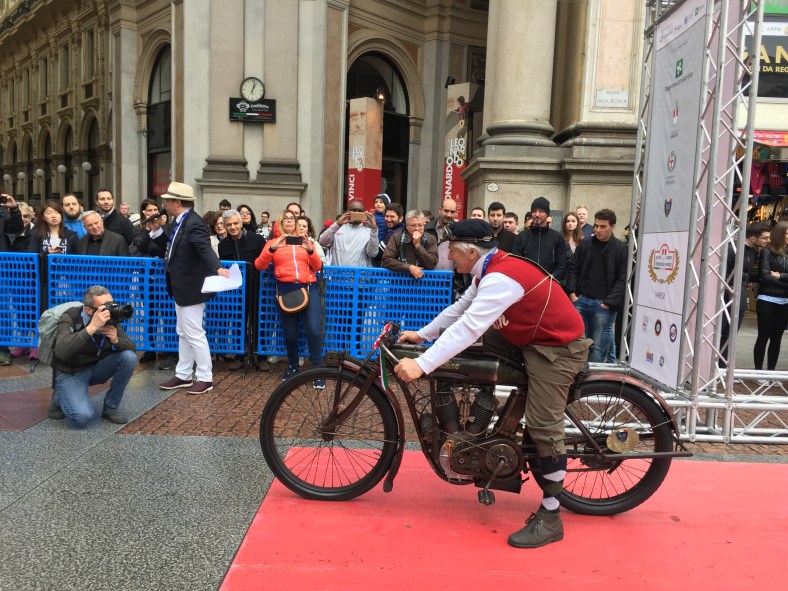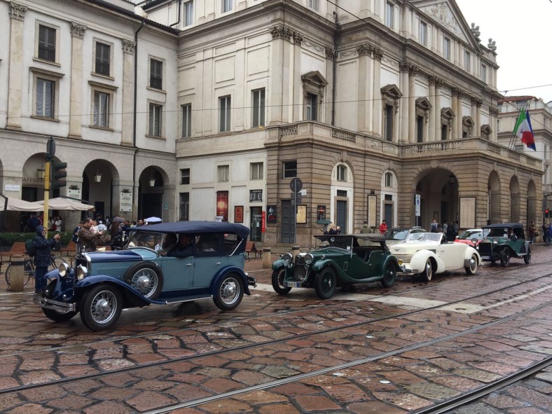 Milano, una domenica mattina fredda e un po’ piovosa. I turisti di Galleria Duomo e Piazza della Scala scattano un po’ assonnati l’ennesimo selfie davanti alla galleria. Improvvisamente e dal nulla appaiono, come giunti da una altra epoca, decine di fantastici veicoli anteguerra guidati da altrettanti piloti, che indossano occhialoni da barone rosso e pantaloni alla zuava. La scena è totalmente assurda e non credibile per alcuni turisti giunti da lontano, ma poi quando si rendono conto che le macchine sono autentiche, si tuffano famelici nella folla in cerca di nuovi selfie a fianco delle antichissime auto…