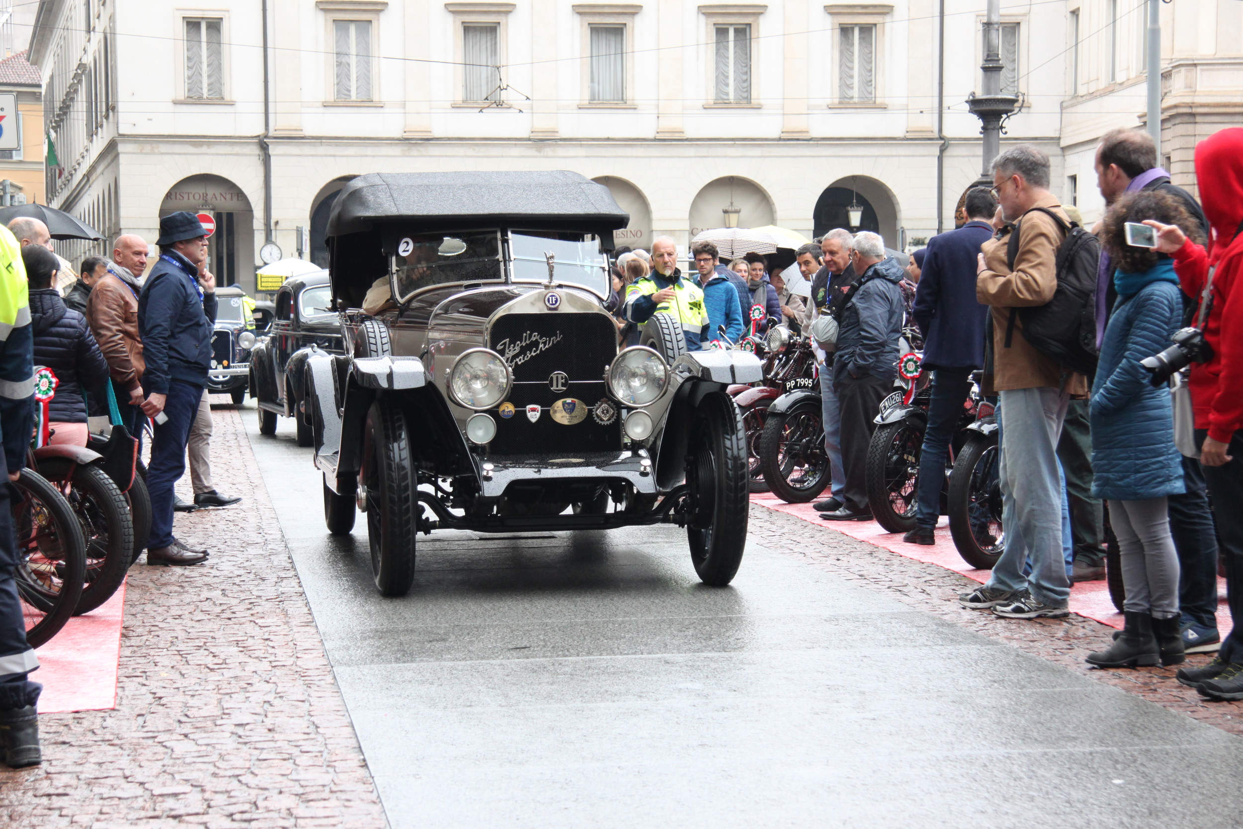 A mezzogiorno, dopo l’arrivo e l’esposizione delle moto, ogni vettura è stata presentata e fotografata da curiosi e appassionati, accalcati per vedere da vicino questi gioielli della meccanica perfettamente conservati, e ancora capaci di far girare la testa con l’eleganza senza tempo delle loro livree scintillanti.
